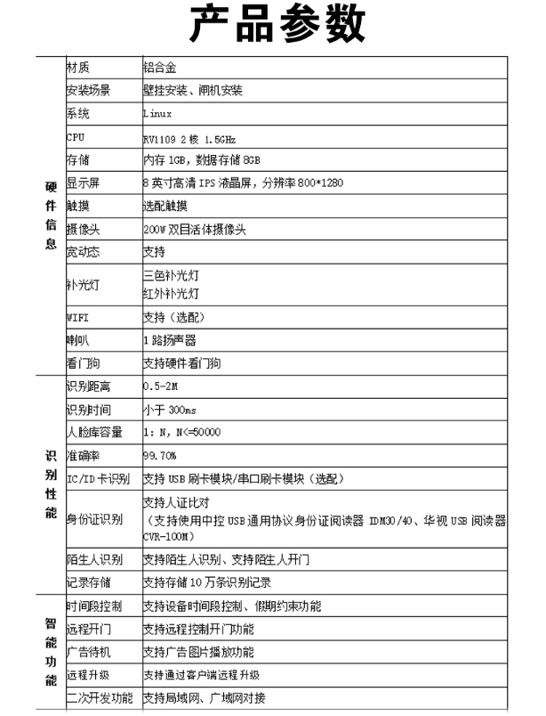 1、獨立AI智能芯片,高速精準人臉識別